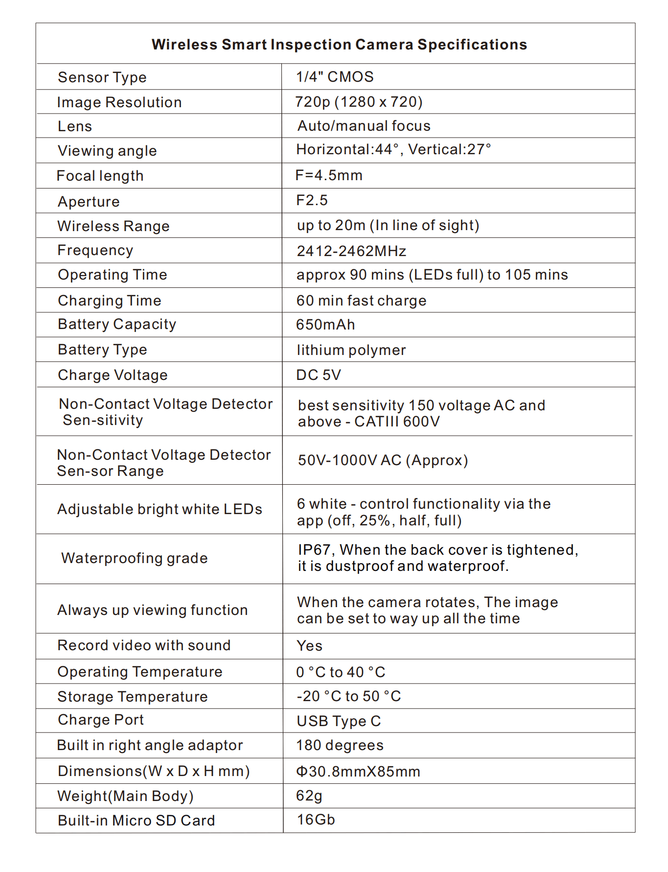 720p HD VIDEO/IMAGES & DIGITAL ZOOM: This 1 inch wide wireless WiFi Video Inspection gets your eyes in hard-to-reach places capturing close range HD, real-time video and crisp clear images directly to your smart phone. View objects up closer using the digital zoom function on the free SmartCamWiFi App.